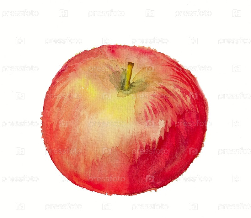 Акварельный рисунок яблока, изолированный на белом фоне