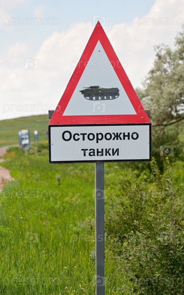 Знак ОСТОРОЖНО ТАНКИ