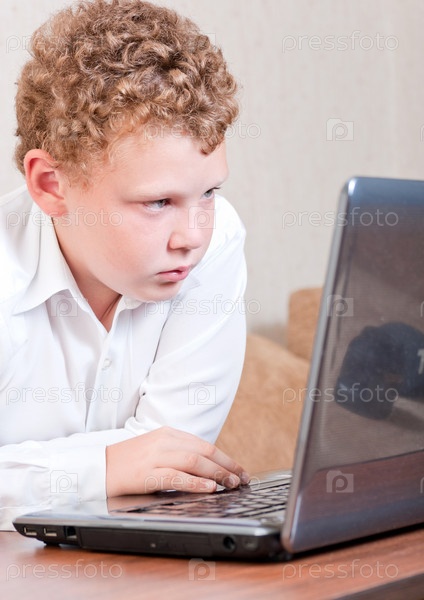 Подросток работает за ноутбуком