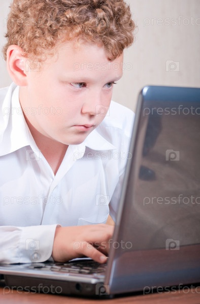 Подросток работает за ноутбуком