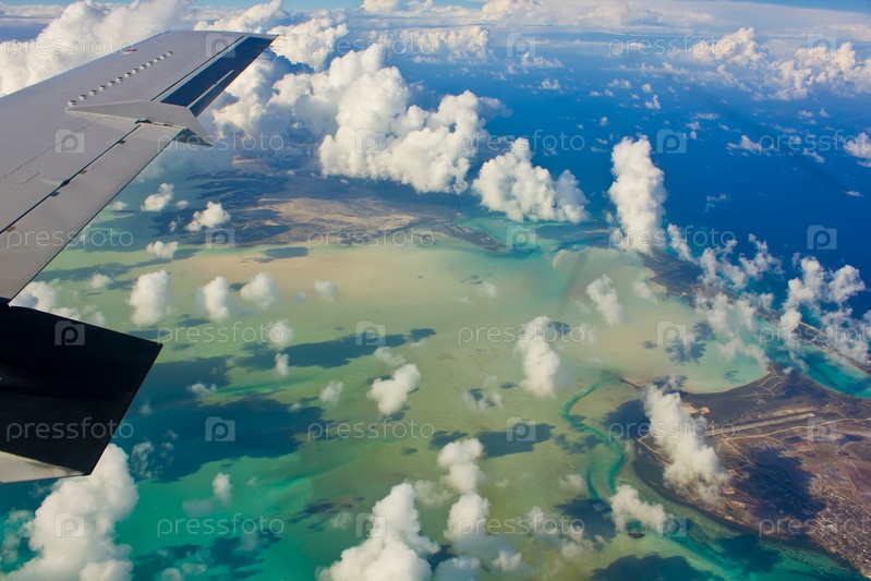 Бирюзовые лагуны Теркс и Кайкос с самолета