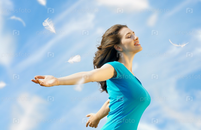Красивая девушка наслаждается летним солнцем