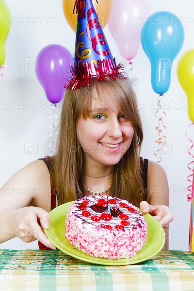 Молодая девушка празднует день рождение