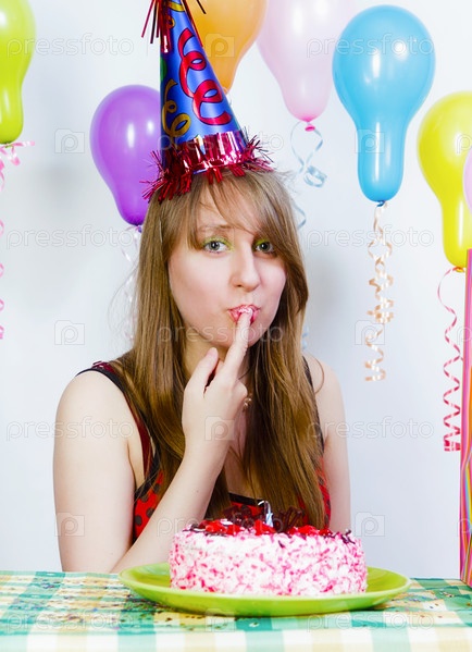 Молодая девушка празднует день рождение