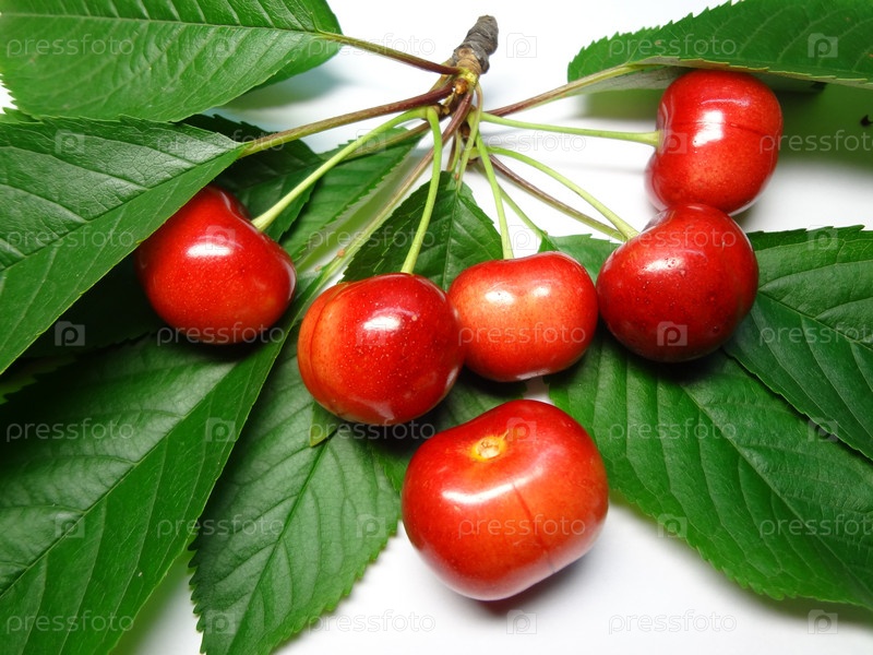 Вишневая веточка на белом фоне