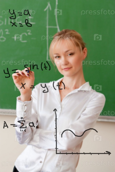 Учитель на фоне доски в школе