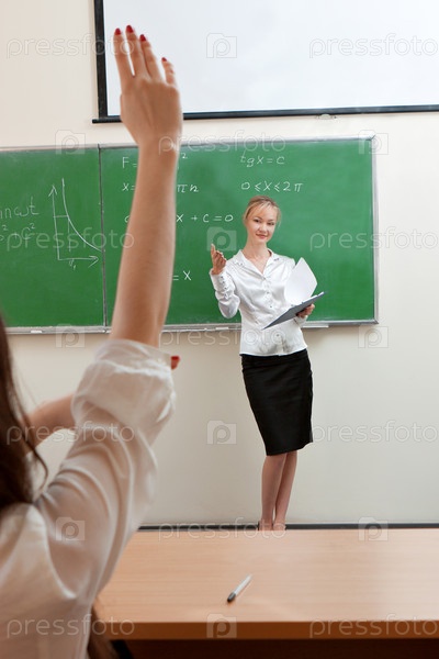 Учитель на фоне доски в школе