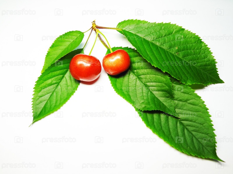 Вишневая веточка на белом фоне