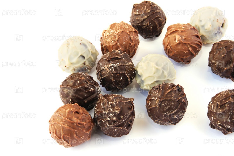 Шоколадные конфеты на белом фоне