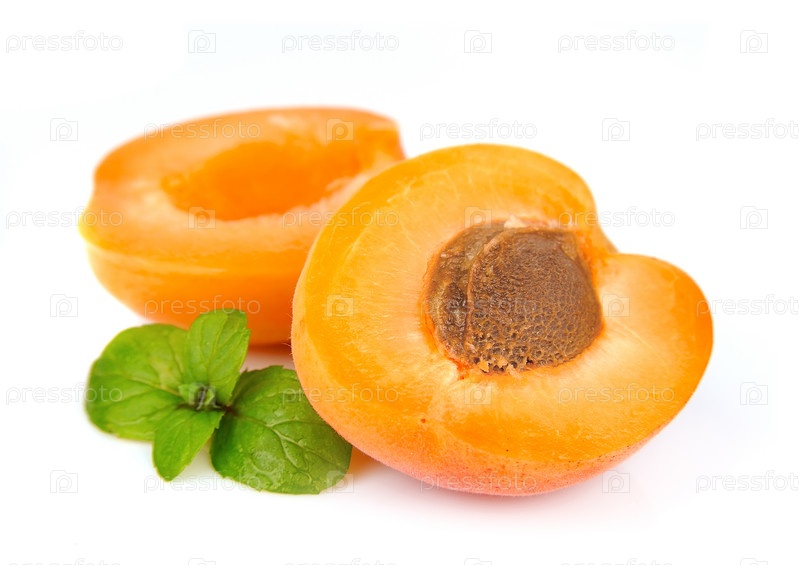 Абрикос с мятой, изолированные на белом фоне