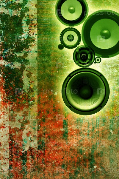Гранжевый музыкальный фон с зелеными динамиками