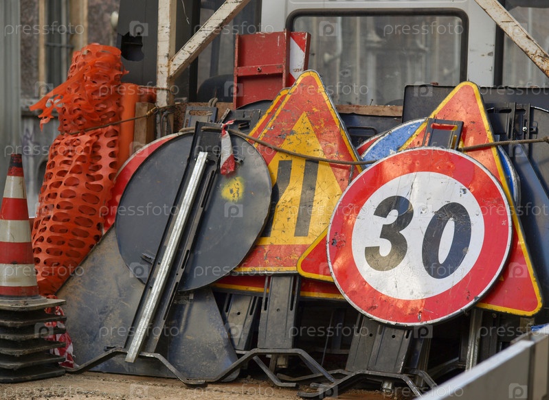 Знаки дорожных ремонтных работ в кузове автомобиля
