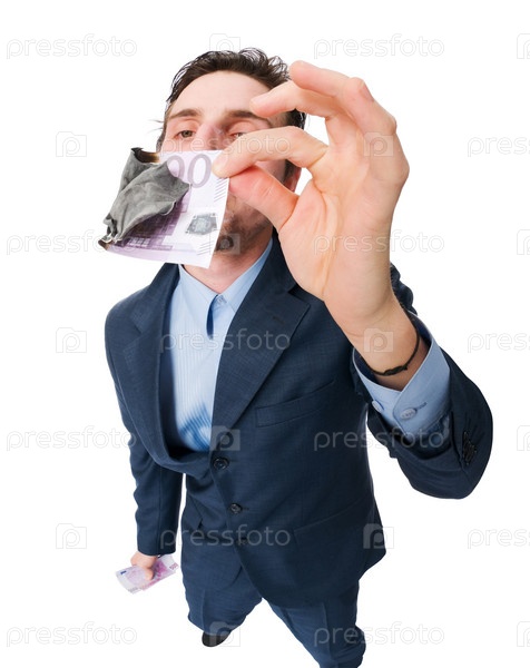 Бизнесмен с тлеющей купюрой