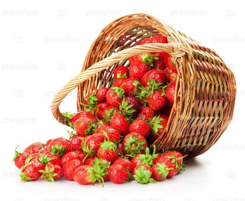 Свежие ягоды клубники в корзине на белом фоне
