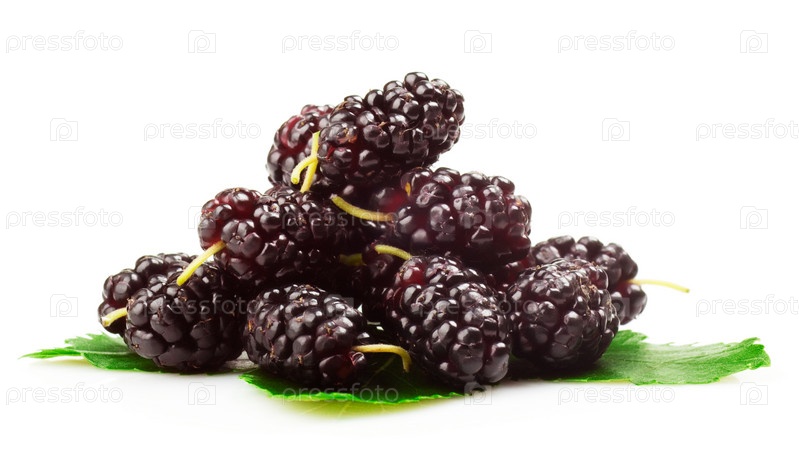 Плоды тута с листьями. Изолированы на белом фоне