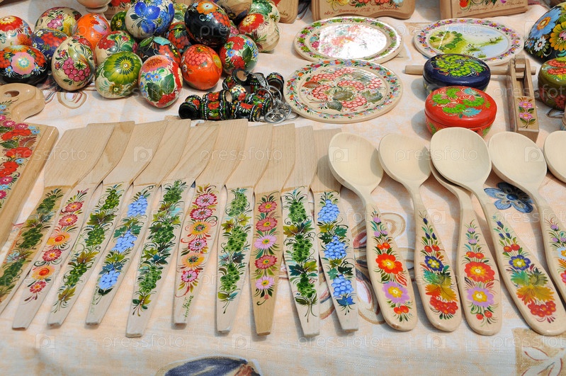 Народные деревянные сувениры на рынке