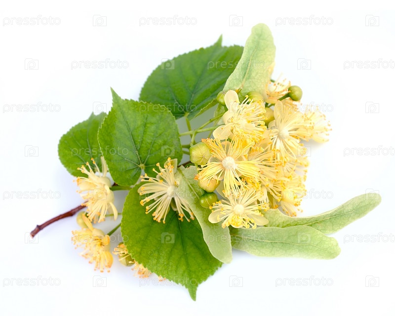Свежие цветы липы на белом фоне