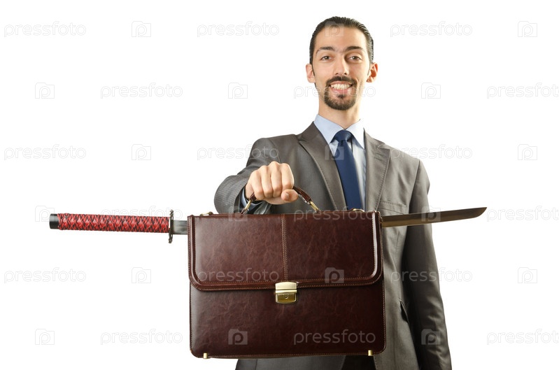 Предприниматель с мечом на белом фоне