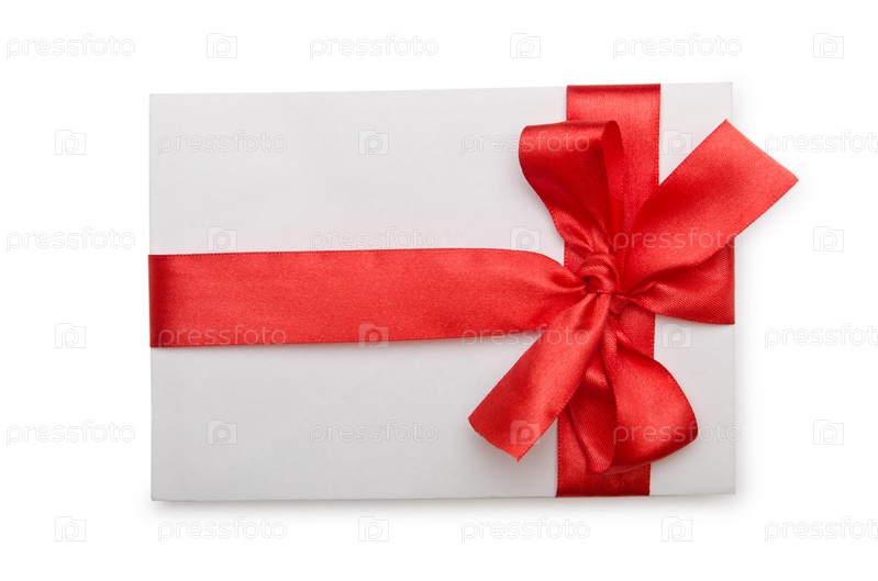 Конверт с яркой лентой на белом фоне