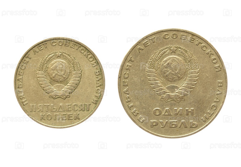Советская монета 1967 года, посвященная празднованию 50-летия Ленинской революции. Изоляция на белом фоне