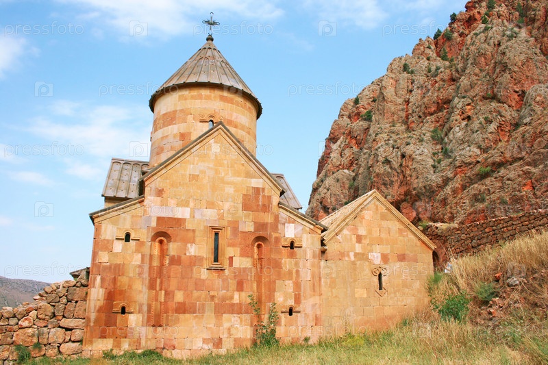 Монастырь Нораванк в Армении у подножия красных скалистых гор
