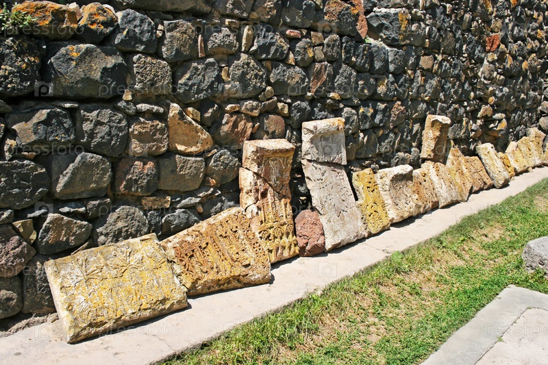 Камни с крестами или хачкарами в армянском монастыре Севанаванк IX века