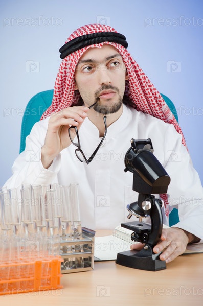 Арабский химик работает в лаборатории