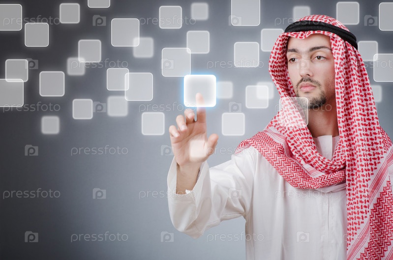 Араб нажимает на виртуальные кнопки