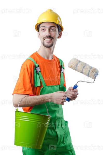 Молодой маляр с инструментом