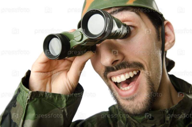 Молодой солдат с биноклем