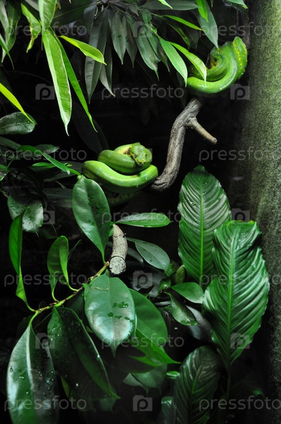 Зеленая змея в террариуме