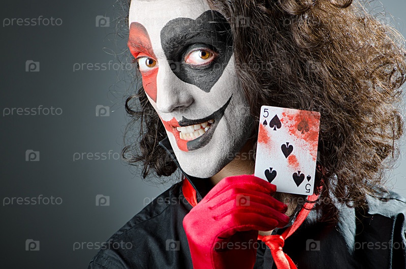 Джокер с маской на лице в студии