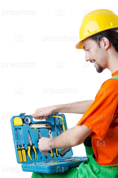 Рабочий в комбинезоне с инструментами