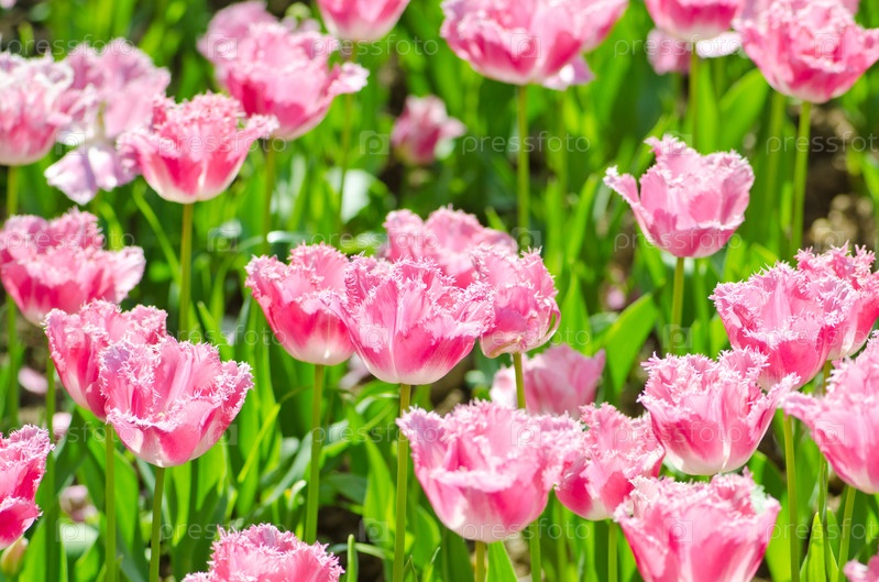 Сад с цветами тюльпанов летом