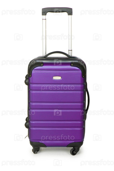 Чемодан на колесах на белом фоне