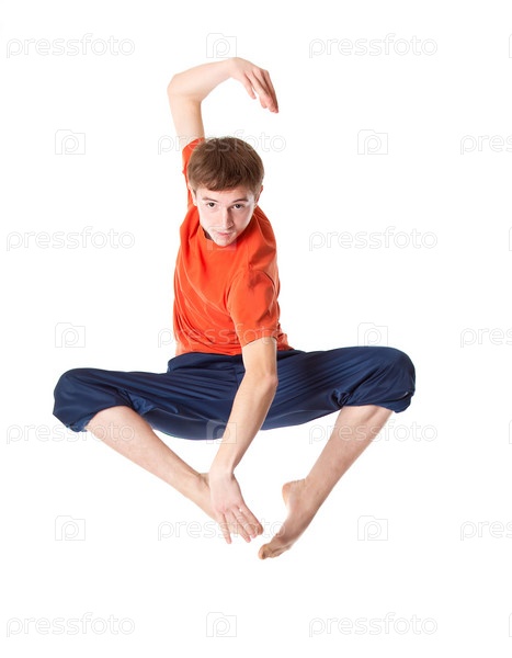 Молодой гимнаст на белом фоне