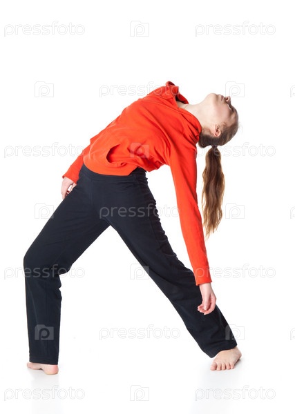 Молодая девушка-гимнастка на белом фоне