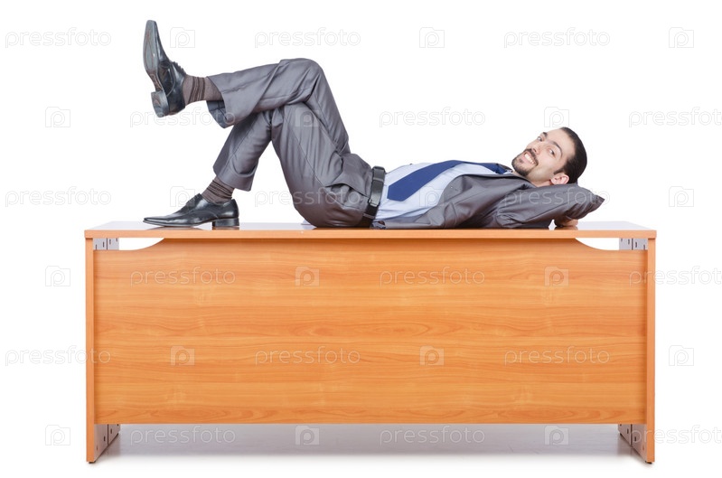 Бизнесмен лежит на столе
