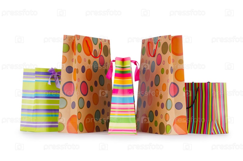 Бумажные пакеты, изолированные на белом фоне
