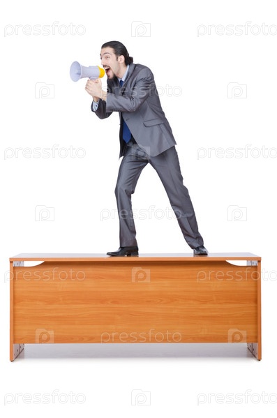 Бизнесмен с громкоговорителем на столе