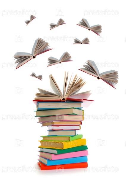 Летающие книги на белом фоне