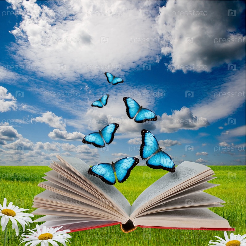 Открытая книга с вылетающими из нее бабочками