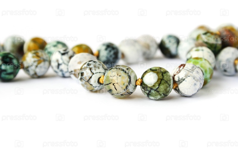Красивые бусы из агата на белом фоне