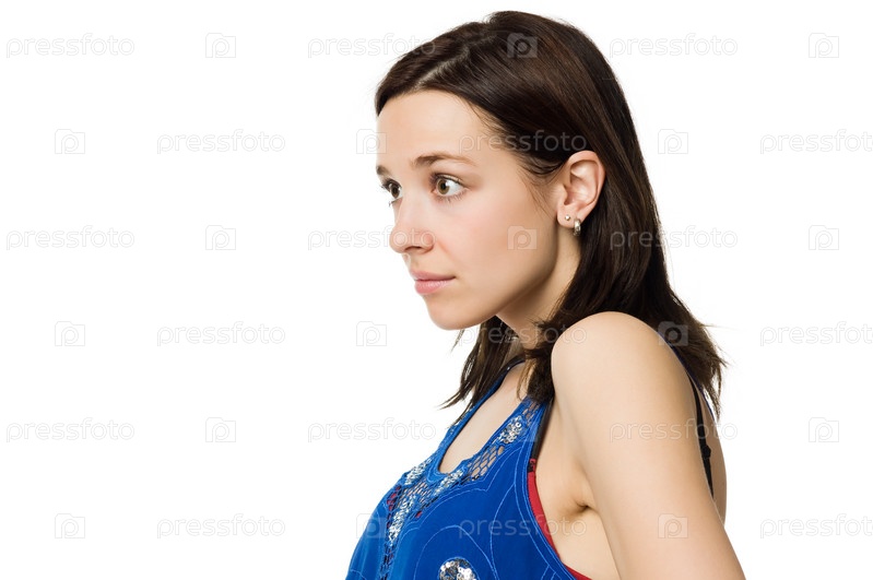 Симпатичная удивленная девушка на белом фоне