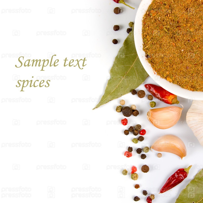 Различные специи на белом фоне
