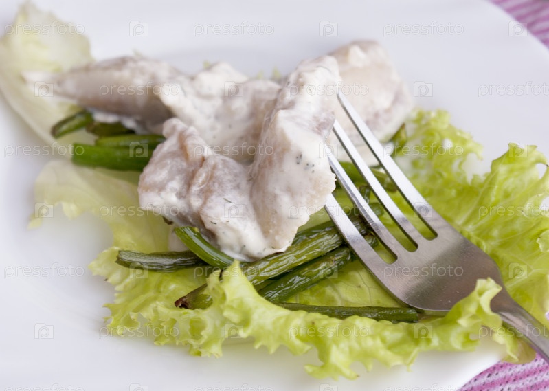 Аппетитная маринованная селедка с жареными стеблями чеснока