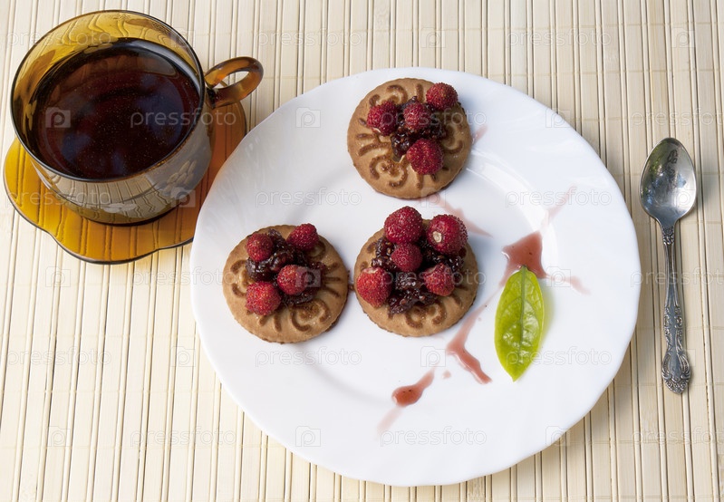 Аппетитное печенье с чаем и земляникой
