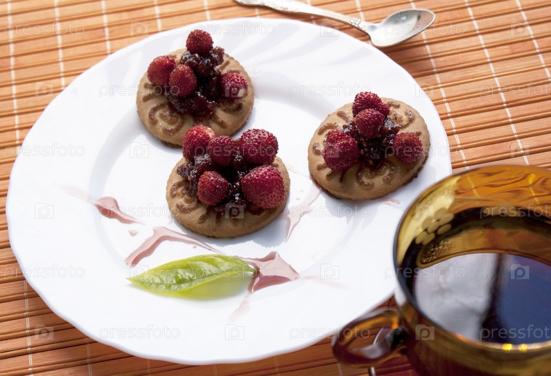 Аппетитное печенье с чаем и земляникой