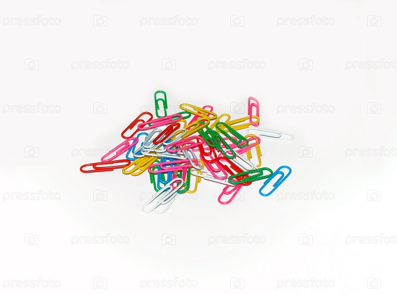 Цветные скрепки на белом фоне