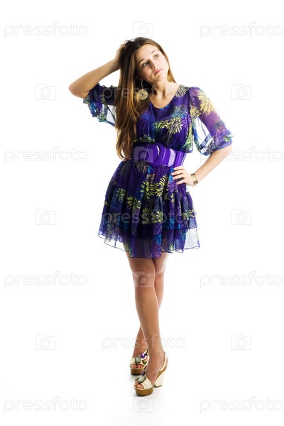 Красивая девушка в фиолетовом платье